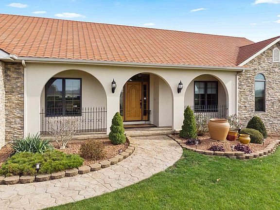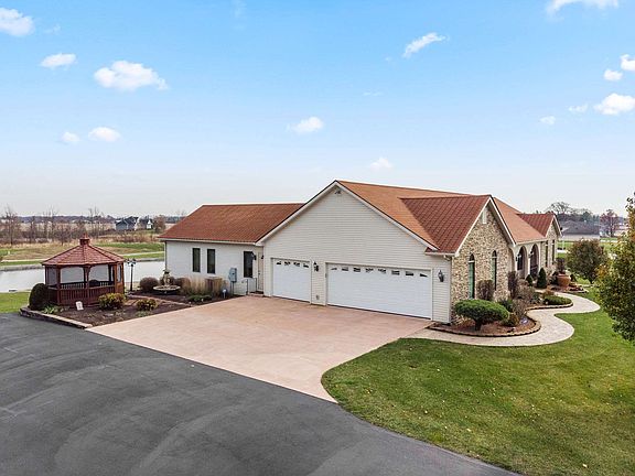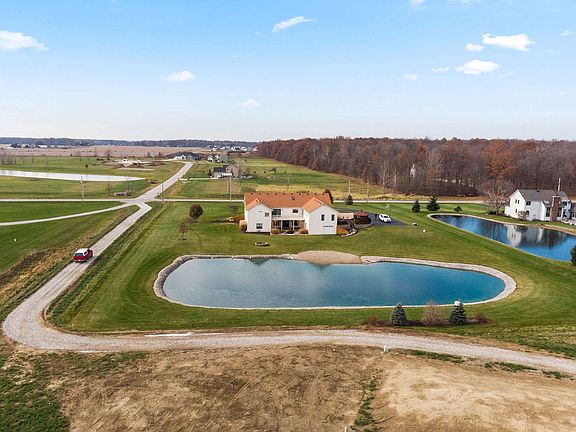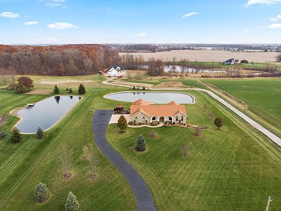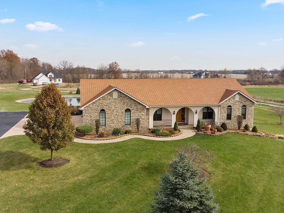 Great location, beautiful setting, and well-planned functionality! Immaculate and ready to move in! 6 bedrooms and 4 full bathrooms! This mediterranean style home features 2.5 acres of beautiful scenery, stocked pond, gazebo and more! The stamped concrete walkway and professional landscaping enhances the setting! Guests will enter a large foyer area, as well as living room with decorated multiple archways. An adobe fireplace adds welcoming charm and warmth. Easy access to the large deck provides a great view! Two spacious bedrooms and a full bath makes it convenient for family or guests. In the master bedroom ensuite, a walk in closet, a separate shower and an additional walk-in bath with jet system provides a great space to get ready! On the other side of the main level, you have an open concept eat in kitchen with large breakfast bar, double oven, granite counter tops, and plenty of cabinetry. From the kitchen there is a 4 car garage that provides ample space for your vehicle needs. A large laundry room leads into a separate living area (or mother in law suite). This area has its own full kitchen with quartz countertops, full bathroom and spacious bedroom with walk in closet. A separate entry provides convenience and access to the large deck. The full finished basement has an extra large family room, kitchenette, extra storage rooms, and additional 2 car garage. From the family room, access to the concrete covered patio and view of the pond.
