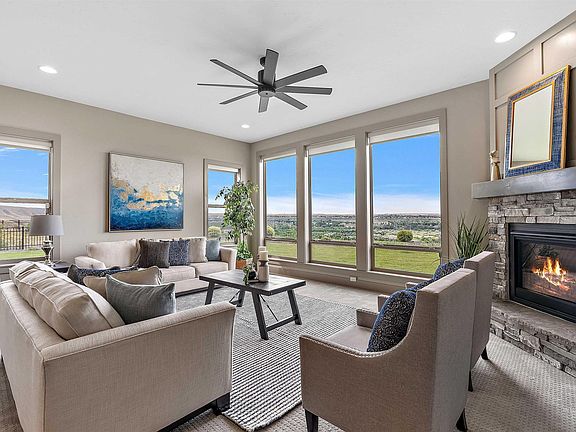 Don't miss this rare opportunity - former model home in the coveted foothills community, Harris North. Builder/developer chose site for a reason, best views in the sub/valley! Enjoy the sweeping 180 degree views of Boise/Barber Valley from most of the home. Being the model, builder added a bunch of upgrades over already upgraded level of Harris North homes. Spacious 2-story home has upstairs master & main level guest suite + rare 4-car garage. Office leads to covered back patio with outdoor fireplace. Massive Chef's kitchen featuring huge island, upgraded cabinetry/countertops & butler's pantry. Master with amazing views, huge spa-like master bath with freestanding soaker tub & door-less walk-in shower with dual heads. Upstairs Loft/bonus/family room enters you to a 14x14 covered balcony with both having spectacular views. Start off right with a courtyard entrance & being met the moment you walk in with the amazing valley views. Big yard. Upstairs laundry. Finished air conditioned Garage with epoxy floors!