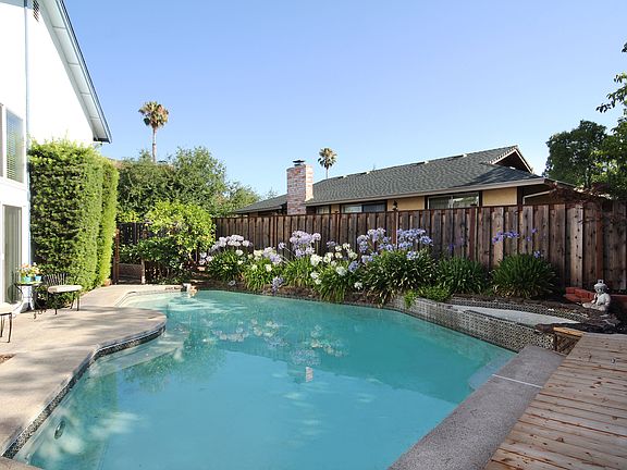 NO HOA, 2 story, 2 beds plus loft or 3rd bedroom upstairs, FULL master suite downstairs, three living areas, living room with high ceilings, family room and loft living area, large, light kitchen, POOL, only three homes on court, double attached garage, separated lawn area yard, deck off the back, some new windows and some hardwood flooring...VALUE is here, this model has sold from about $595000 to $621,000 within 2 months.
