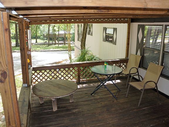 Cute 2 bedroom, 1 bath mobile home less than 1 mile to Alberta Creek! wood floors throughout. Property includes all appliances and washer & dryer. very Nice size shop for all your toys! Includes pool table, ping pin g table, and foosball table. Covered front and back porches. Property owned by Oklahoma licensed Realtor.