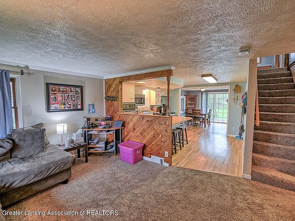 Rare find with this 4 bedroom 2 bath home on 1 acre in Holt schools! Country living just minutes from school & shopping. Semi-open floor plan with living-kitchen-dining. Center island for the chef! Large dining space overlooks rear deck. Family room off of main floor laundry & dining area could be home office, play area, or even 5th bedroom. 2 bedrooms & full bath finish out main floor. Upstairs 2 giant bedrooms await, both with good sized closets. Full bath has whirlpool tub. Basement area forstorage. Outside find a shed plus chicken coop. Plenty of room to run or build a garage! Convenient location on paved road. Not many 4 bedroom homes in Holt for this price point so hurry & schedule a showing today!