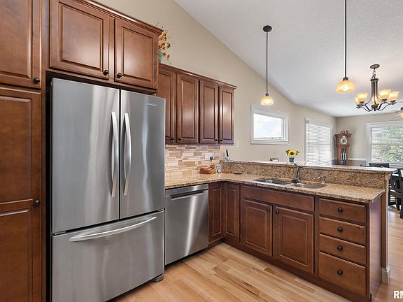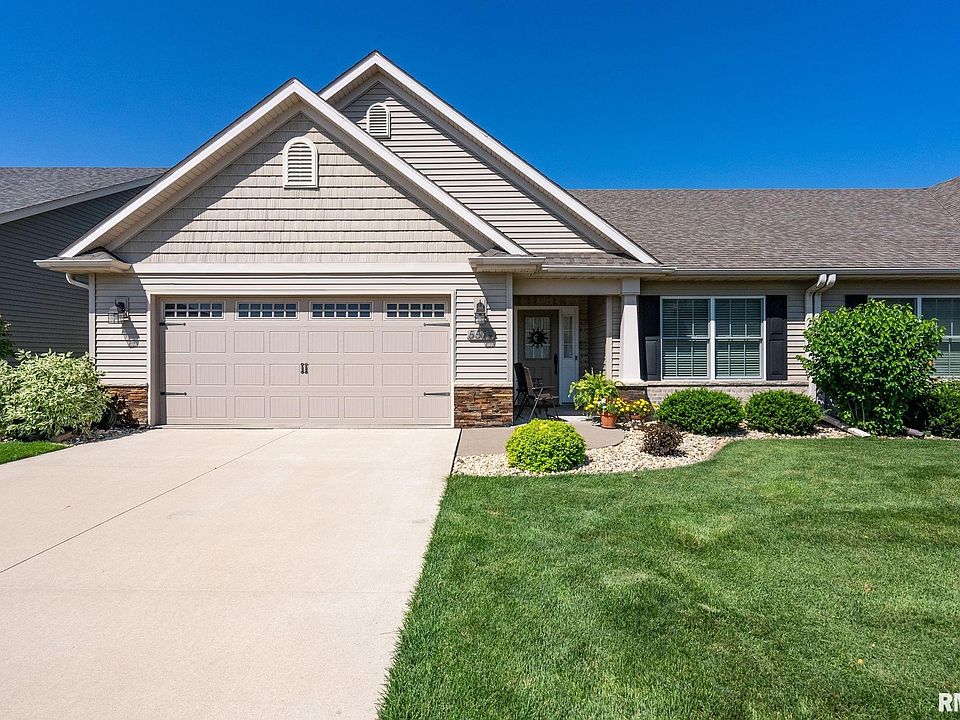 Rare find! This 3-bedroom ranch villa is move-in ready and designed for easy living. With a zero-entry layout, oversized doorways, and no steps on the main level, convenience and comfort are built right in. The main floor features cathedral ceilings, and an open-concept layout that feels both spacious and welcoming. The dining/sunroom flows perfectly into a bright 4-season room, where you’ll enjoy peaceful views of open green space & landscaping behind. Step through the sliders to a private deck for nice outside living space. The kitchen is stylish and functional with solid surface counters, walk in pantry, and all appliances included. Main level laundry area. The primary suite has double vanities, a generous walk-in closet, and a walk in tile shower for ease and comfort. The finished walk out basement has a large rec room, 3rd bedroom, 3rd bathroom, and ample storage space! Large covered patio off the walk out basement. 2 car attached garage. If you’re looking for low-maintenance living in a like-new home with thoughtful design and beautiful finishes, this one checks every box!