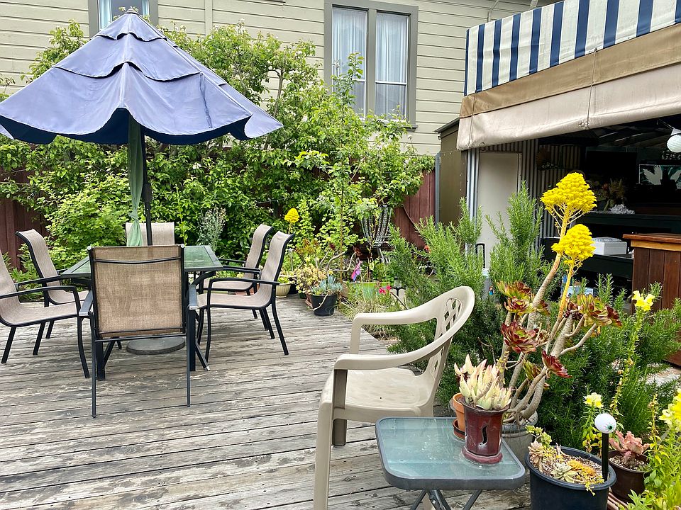 Private Room with closet and hardwood floors in the top large floor of a Victorian. Renter also gets a sunny Office (Separate room) for your work or hobby. Sunny, large, and well stocked kitchen. Spacious living room filled with windows and plants. Best feature of the living space is the high ceilings and full modern upgrade recently to a beautiful victorian. Best outdoor feature is built in fire pit, entertaining pavilion, and large sun eating deck. Laundry downstairs. 1 Year Lease, Then Month To Month Smoking Outside Only Affordable Utilities Safe Neighborhood Detached Garage for Storage
