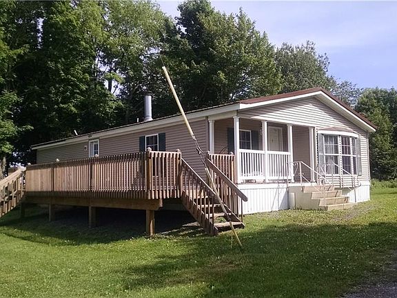 Located on Tug Hill in the heart of snowmobile country, this 3 bedroom/2 bath double-wide manufactured home comes with large detached garage to store all your sleds. Home features a fireplace in living room, master bedroom suite and two additional bedrooms and a second bath. It has had a large deck which was replaced in last 4-5 years. Roof has also been recently replaced. Call now to schedule a showing of this property so that you can be ready to enjoy the snow this winter.