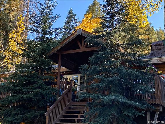Two houses for a total of 1935 sq ft, 3 bdrms 3 baths. Square Footage is approx 1132 for Main house and 803 for guest cabin (ADU), all set on 1.58 beautiful acres! Rustic charm close in to downtown Evergreen! So many trees it feels like you are in a Forest! Privacy and quiet abounds. In the main house, every window looks out to beautiful green trees and a mountain view out of the front. Windows are overly large, including six bay windows, feeling like you are bringing the woods inside. Large rock fireplace in kitchen, with back wall exposed in family room, with a wood stove, for cozy winter nights. Hardwood floors in Kitchen and 2nd bedroom.