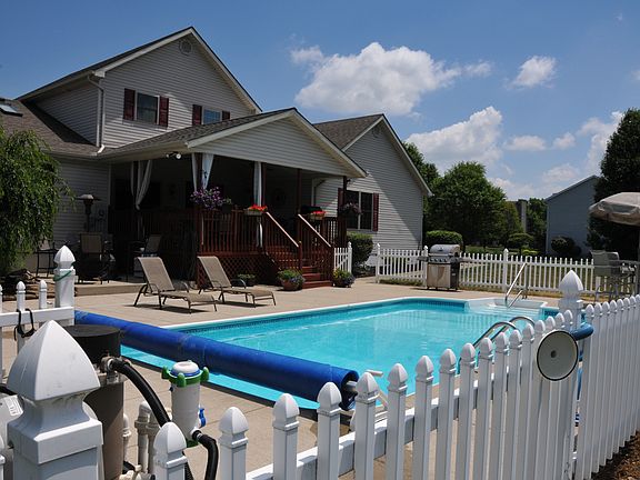 Gorgeous Cape Cod home in Windy Ridge on a quiet cul-de-sac.New high efficiency heat pump installed December 2016. This home is beautifully decorated and has a nice open floor plan. The spacious eat in kitchen with hardwood floors and oak cabinets open to a large family room with a fireplace and sky lights. There is a living room that is currently being used as a home office. The large 1st floor master suite with a walk in closet and a spacious master bath with a jacuzzi tub and shower. The upstairs of the home has two large bedrooms with a full bath. A partially finished basement that is currently being used as a workout area, but could be a family room or 4th bedroom. The backyard of this home is a oasis to enjoy during the summer months. In ground pool, with a beautiful covered deck off of the kitchen. Outdoor storage building for storage of lawn equipment. USDA eligible