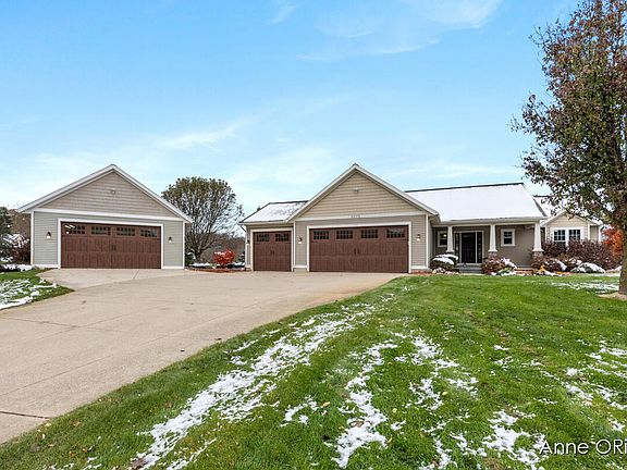 Welcome home to this meticulously maintained ranch, offering 2,638 finished SQFT of custom living on a prime 1.16-acre corner lot. This home perfectly balances everyday convenience with exceptional entertainment features. The open-concept main floor centers around a spacious kitchen boasting stainless steel appliances, granite countertops, and a large center island with a snack bar. The adjoining living room invites relaxation with a cozy gas fireplace flanked by custom built-in shelving. The main level also provides unmatched convenience, featuring a Primary Suite with full bath and walk-in closet, a second bedroom, a dedicated desk area, second full bath and a half, and a main-floor laundry room. The living space extends to the fully finished walk-out basement, complete with a large family room with surround sound, two additional bedrooms, a full bath, and a utility room that doubles as a home gym. Step outside to your outdoor paradise! The beautifully landscaped grounds include a covered deck and a custom brick patio perfect for entertaining, a vibrant flower garden, and an above-ground pool for summer enjoyment, kept pristine by underground sprinkling. For the hobbyist or car enthusiast, this property is unmatched: it features a three-car garage with an EV charger hook-up (and wired for a second!) and a heated pole building/workshop perfect for two extra vehicles or dedicated storage. This stunning, updated home is truly a must-see! Located in desirable Boulder Creek Estates and close to downtown Middleville, Thornapple River Trail, Yankee Springs, and TK Schools. MULTIPLE OFFERS RECIEVED, DEADLINE IS SET FOR 11/14/25 AT 8PM.