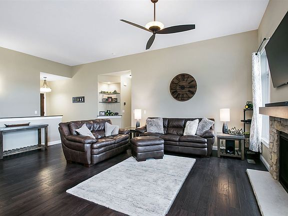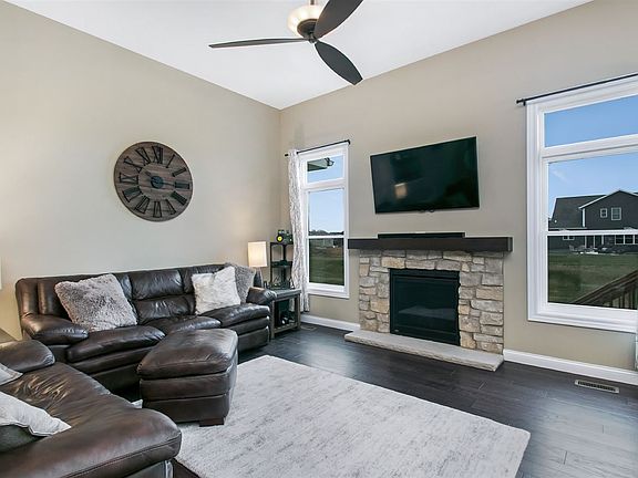 This like-new ranch home features an open floor plan with hardwood floors, white trim, 3-panel doors and tasteful decor throughout. Kitchen with granite countertops, stainless steel appliances, breakfast bar and single bowl sink. Great Room includes vaulted ceilings and a beautiful stone hearth fireplace with wood mantle. Informal dining room leads to the deck overlooking the level back yard. Large master suite with dual vanities and walk in closet. Two additional bedrooms with full bath. Drop zone with bench off the kitchen along with a plank tiled laundry room. Full basement has two sets of daylight windows. Attached 3-car garage.