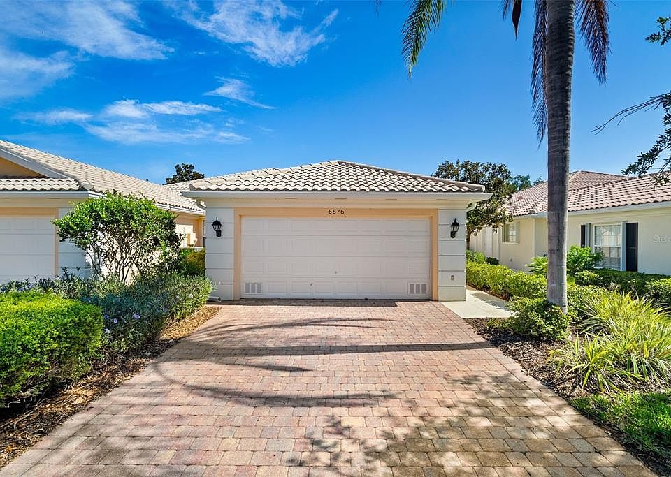 One or more photo(s) has been virtually staged. Live your best life at Villagewalk! Located in Palmer Ranch this gated Resort style community is the ideal place to call home. Impeccably maintained 2-bedroom 2 bath Villa perfectly situated on a waterfront lot. The well-designed Capri III Villa has an open floor plan which includes a great room, dining area and open den. The great room has vaulted ceilings, wall unit for storage and ceramic tile flooring. The light and bright kitchen has newer appliances, granite countertops, plenty of cabinet space and a closet pantry. Your master bedroom has a walk-in closet with built in organizers, bathroom with dual sink vanity and walk in shower. Guests will enjoy their own bedroom with walk in closet and full bathroom. The laundry room is well equipped with cabinets for storage and utility sink. Relax and enjoy nature in your private lanai on water. Additional features include hurricane shutters, central vacuum, and attic storage. Shower, tub and floors just regrouted. No carpet here, all tile flooring. DiVosta built to last with poured concrete reinforced construction. First class amenities including six har tru Tennis courts, a Geothermal heated Lagoon Pool, a Geothermal heated Lap pool, Pickleball courts, Bocce ball, Basketball, Clubhouse with Fitness center, Meeting space and Library. The Town Center is where you will find the Restaurant with outdoor seating, Hair salon, Boutique, Gas station and onsite HOA office. Miles and miles of walking and biking trails. A Rated School district. Close to the new Publix, Legacy bike trail, Costco, Siesta Key beach, doctors, dining and more. Call today to see this fantastic home!