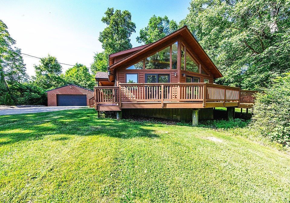 Escape to your own private oasis! This stunning 4-bedroom home, nestled on 2 beautifully wooded acres, offers a perfect blend of modern updates and tranquil country living. Inside, you'll be greeted by an open floor plan and vaulted ceilings, creating a bright and airy atmosphere. The first-floor primary bedroom with its deluxe bathroom provides a luxurious retreat, while the large great room with a cozy wood-burning stove is ideal for gathering. Enjoy seamless indoor-outdoor living with a huge wrap-around deck, perfect for entertaining or simply taking in the natural surroundings. A spacious kitchen awaits your culinary creations, and the detached 2-car garage provides convenience. PLUS, you'll find a massive 32 x 36 pole barn with electric and a concrete floor, offering endless possibilities for hobbies, storage, or a workshop. Updates throughout!