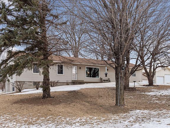 Stunning views of wooded country, sunsets, wildlife and nature. Just 1/4 mile off tar this property brings private country living at its best. Grand rambler of 1400 sf on main level with 4 bedrooms and 2 baths main level only. 3/4 bath in lower level just finished last year. In 2017 3 large Anderson windows were added throughout the home bringing nature inside from every angle. This home includes an oak kitchen, all appliances, and a lower level ready to update and make your own. LL 14 x 14 storage room and workshop/office area. Attached 26 x 18 insulated garage with door into the mudroom with large closet, 30 x 22 detached garage PLUS 1999 built 40 x 24 Lester Pole Shed concreted with electricity, plus 10 & 12' high OH doors. Large apron of concrete out front with 3 drains. 2017 Maintenance free deck facing back private views.