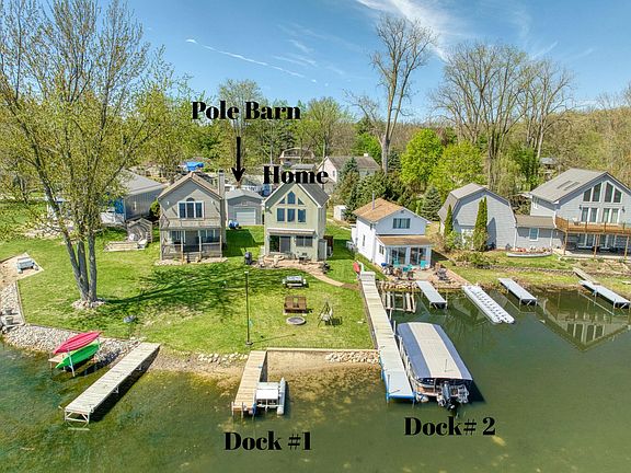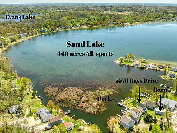 Welcome Sand Lake, boasting 440 acres of all sports fun and fishing and year-round recreation. Completely remodeled down to the studs in 2008, this move-in-ready home feels like new, offering modern comfort with timeless charm. Enjoy breathtaking views from inside the home and unbeatable access to the water with two private docks—one 60 ft, one 20 ft—perfect for boating, swimming, or simply soaking up the sun. The home features two comfortably sized bedrooms, a loft, and convenient second-floor laundry. A spacious 30x16 pole barn provides ideal off-season storage for your lake toys. Check out the outdoor shower area to hose down your sandy feet and keep your furbabies clean fro the lake! Full access to water with a vehicle. $100 annual fee for lily pad spray treatments too. Located just minutes from charming downtown Brooklyn, local wineries, golf courses, and shoppingthis is lake life at its best with all the conveniences nearby. Whether you're looking for a weekend getaway or a year-round residence, this rare opportunity on Sand Lake is not to be missed!