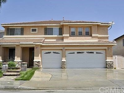 Upgraded pool home with 5 bedrooms and 3 baths. One bedroom and bath downstairs. 4 bedrooms and 2 baths with large loft upstairs. Upgraded kitchen with island, granite counters and full granite backsplash. The kitchen opens up to the large family room with fireplace. Large master suite with big walkin closet, dual sinks with separate shower and tub. Laundry with lots of cabinets space. Crown molding , laminate wood floors upstairs. 3 car garage. RV access. Gorgeous backyard with sparkling pool. Close to shopping, entertainment, schools and freeways.