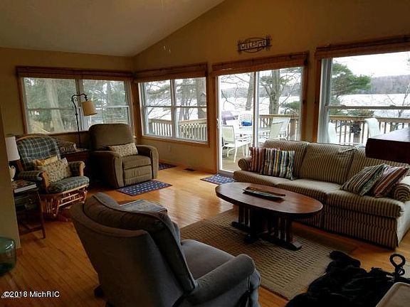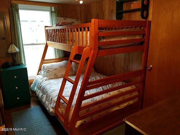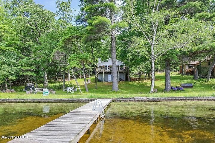 This is a remote, quiet, peaceful LAKEFRONT setting facing the south sun along Hamlin Lake's north shore. Seasonal use now, but many neighbors have retired here full time after they fall in love with lake life near Ludington. Added by the current owner, the modest great room leads to a large deck out to a wooded setting overlooking your private lake frontage. This open, three bedroom, one bath cottage comes with 150' of lake frontage and backs up to the Manistee National Forest, so you can go hunting out your back door and fishing out of the front.