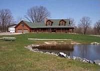 A country road leads to this private country log home on 5 acres that overlooks a 19' deep spring fed pond. The 3635 sq ft. 3 bedroom home hs a bright open concept with high ceilings,a large county kitchen with cherry cupboards, wood flooring,back to back fireplace and a large game room. The master bedroom has it own private bath and hot tub. There is a wrap around deck and a large deck in the back yard for entertaining. .Truly this is country living at it's best.