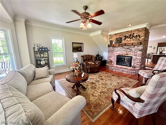 Situated on 36 breathtaking acres nestled on the Appalachian Plateau in the quaint village of Andover, this stunning homestead is the perfect blend of modern comfort and natural beauty. Located in between Cleveland and Erie Pa, residents of Andover enjoy the quiet, easy pace of small town life with plenty of parks, trails and Pymatuning Lake activities to keep busy. Built in 1880 but reimagined and updated through the years, this farmhouse offers nearly 2,800 square feet of interior living space plus an incredible wraparound porch perfect for a pair of rocking chairs and a pitcher of lemonade. Highlights include a formal living room, private office, cozy family room with two-sided woodburning fireplace, beautifully-remodeled kitchen with cherry cabinetry, Corian countertops, oversized crown molding and all appliances. (And don't miss the view from the corner window above the sink!) The dining area features a set of French doors to access that gorgeous porch, plus there is a large laund