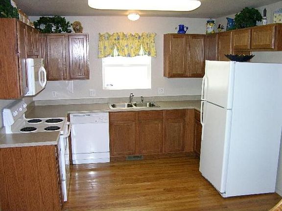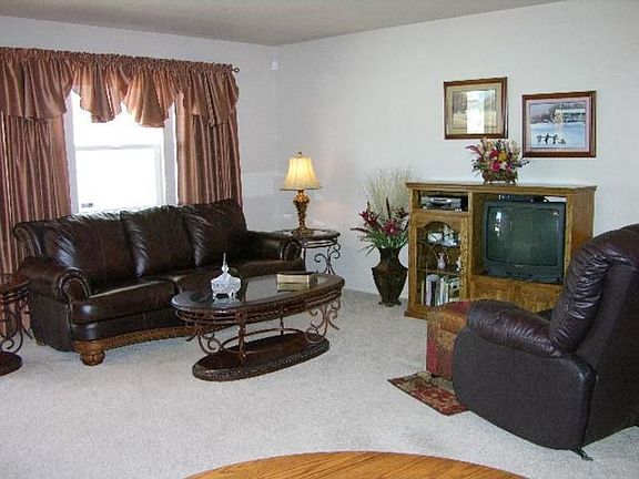 This ranch style home is located in a great neighborhood. White picket fence and country porch. Open familyroom with dining area off the kitchen. Large kitchen with lots of cabinets and counter space. Flat top stove and over the range microwave. All white appliances. Master bedroom with a full bath off the hallway. Second bedroom has an attached bath. Laundryroom functions as mud-room through to the garage. 6-panel doors, vaulted ceilings, ceiling fan, sprinkler system. Low maintenance home.