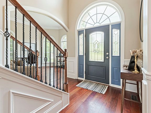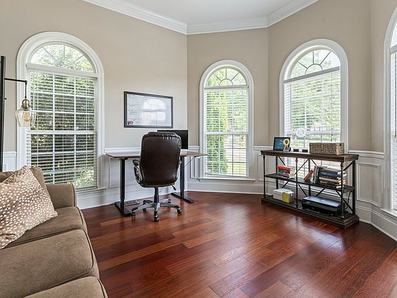 Spacious primary bedroom with tray ceiling on lower level plus four additional large bedrooms on upstairs level. A separate office space can be found on the main level of the home off of the living room across from a beautiful formal dining room.