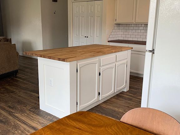 As you pull up to this large property residing at the end of a cul-de-sac, you'll find the home freshly resided and painted. The roof has also been replaced less than 4 years ago. The small front yard allows the drive way to be large enough to park several vehicles and also provides a concrete pad into the gated backyard perfect for RV parking. You notice the new LED outdoor fixtures as you walk the a modern front door that is complete with a screen door. You step onto a lineolem lined landing, a door to your left enters into a single car garage and you see a stack of tile, there is enough tile there to tile several rooms, (our plan was to tile the kitchen, dining room, and landing into the home with the same color code tile as the bathrooms are tiled in). First you walk into the living room (the carpet is less only 3 years old), if you walk left you walk into the the tiled washer/dryer area with a closet on the left (great for linens, towels, or laundry items.) to the left is the main bedroom that has a very large double closet and a door to the backyard as well as a tiled full bathroom. To the right you will find 2 more bedrooms with closets, as well as the main tiled full bathroom. If you would have turned left after entering the home you would pass a closet on your left (works well as pantry, pet food, jacket storage) on your way into the linoleum lined kitchen backs up to and irrigation canal, you'd notice the newer dish washer in front of you and the newer electric range on your left. Against the wall across from you is a twin stainless steel sink with a newer faucet, the counter continues around into a horse shoe shaped end at the front of the refrigerator with a walkway into the dining room with a modern light fixture. In front of you is the sliding door exit to the very large backyard that includes a metal shed. It also has a small landing area great for Bar-B-qeuing, there is also a landing outside of the master bedroom large enough for a hot tub (the home has a 220 Volt box near this pad for hot tub wiring). For a smaller under 1200 sq ft 3 bedroom house it is laid out well and utilizes the smaller space quite well.
