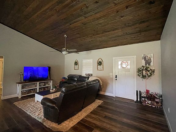 3 bedroom 2 bath on 1.25 acres. Has a porte cochere (like a car port) Newly constructed and located in Gilchrist County. Less than 5 min from Ginnie, Blue, and Poe Springs. 1550 sq. ft. 2350 under roof.
