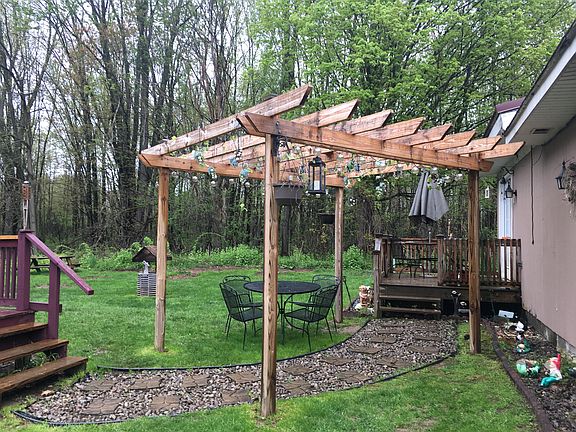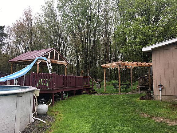 Enjoy the peace and quiet of this 5 bedroom 1 bathroom cape cod on almost 12 beautiful acres! The house is set back from the road a good distance which makes it very private. Many updates throughout! Huge garage! And did you see that back yard?!! Above ground pool with an attached partially covered deck...it's the perfect place to hang out or entertain!!