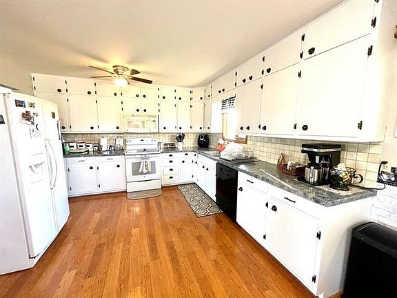 Country Home, 4 Outbuildings on 4 Acres!! This listing offers the best of country living with a ranch style home, multiple outbuildings, and circular drive, ALL located on a beautifully manicured 4 acres m/l with highway frontage and only 5 minutes from El Dorado Springs! The home boasts 4 bedrooms, 3 baths, 1,848 sqft, water softener and water filtration systems, an energy efficient ground source geothermal heat pump with an electric strip for backup and an average utility bill of $165/mo. The property has a perfect garden spot and unlimited potential for a hobby farm of horses and farm animals, easily maintained with good 6-barbed wire perimeter fencing and a 30' x 40' open sided shed for shelter and feed storage. There are two 24' x 24' concrete floor sheds each with one garage door and a walk in for convenience. One shed has electric, a floor drain, garage door opener and includes workbenches and cabinets. In addition, there is a 20' x 30' apartment type building with a kitchen, living area, bathroom with shower, large walk-in closet and a nice, covered porch. Great for extended stays for family and friends, recreation room for family or a vacation rental. The options are endless! It even has access for RV hook up. This is a MUST SEE, COUNTRY RETREAT!! Schedule your showing today!!