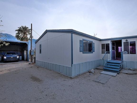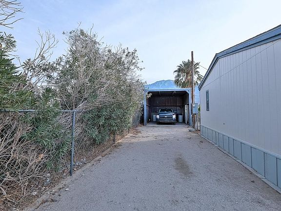 Nice single family home on its own private 1/4 ac lot. It sits on a permanent foundation with earthquake bracing. (433A) Its comes partially furnished with all appliances. Property is completely fenced with additional fencing in the back yard to separate it if you have animals. Has large open 2 car steel garage on concrete. Can also be used for small RV. There is also a small storage shed in back yard and a 40ft storage container on the side yard for all your storage needs. It also comes with a 26 ft circular above ground pool still in box never used.