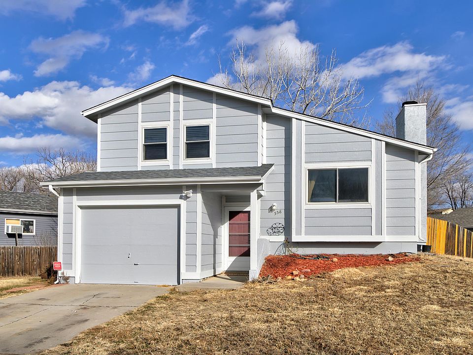 Perfect first home or investment property minutes from Fort Carson! This 3 bed 1 bath 1 car garage features new floors on the main, newer roof, paint, newer kitchen remodel and bathroom! Easily maintained, terraced, backyard that's completely privacy fenced as well. Upon entering the lower level you are welcomed by low maintenance laminate flooring and garage access that leads back to the informal living space/third bedroom. On the main level new modern plank wood look flooring, formal living, natural wood burning fireplace and updated eat in kitchen with walk out access to the backyard and patio! On the upper level is the master bedroom with attached full bath, laundry and guest room! Close to shopping, restaurants, walking distance to popular Metcalfe Park which features a large dog park/skate park and more, close to schools, fire dept and minutes to Fort Carson!