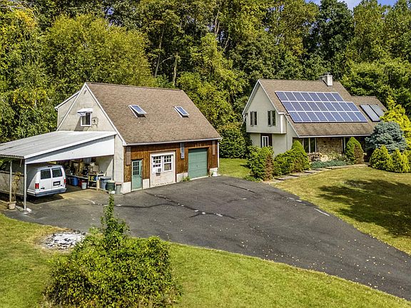 Welcome to 558 Bulltown Road, a great family home and country oasis situated on a 2.5 acre lot Elverson. There are almost too many facets to this property. First, there is a comfortable main home with a first floor primary bedroom and en suite full bath. There are three additional bedrooms on the second floor with a full bath. The main floor has stunning masonry finishes with a patio adjacent to the eat in kitchen/dining area. There is a full, carpeted basement that awaits your vision for either storage or additional living area. Second, this property also has what was a two car garage but one bay has been converted to a fully functioning workshop with electricity. An open carport was added which abuts the garage/workshop area. Above the garage is a studio with a full bath and a compact kitchen which could easily become a home office, family quarters, or hobby room. Third, the property has been outfitted with solar panels that result in greatly reduced energy costs. The carbon credits can be transferred to the buyer upon settlement. There is a brand new HVAC system with a transferable warranty. Lighting rods, carbon monoxide detectors and a portable 8000/10000 W generator are included with the property to offer further convenience and energy efficiency. The lot possesses unlimited gardening opportunities and even has a small cluster of fruit bearing trees. While there are some aesthetic opportunities available to its next owner, it is an ideal spot for the artist, the craftsman, the self employed individual, the gardener or perhaps the empty nester. This home offers versatility and energy efficiency so schedule your visit soon!