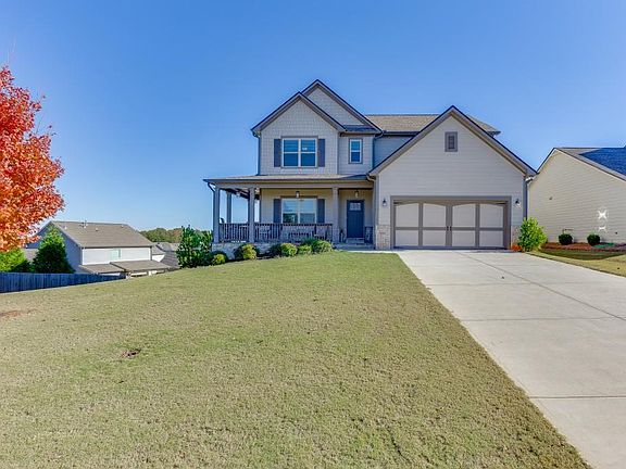 Don't miss this terrific opportunity for a 2020-built craftsman-style home with a basement in a gated clubhouse community that is priced to sell! This popular "Hunter" floorplan features an open kitchen with loads of white cabinetry, an extended island with shiplap, granite countertops, stainless-steel appliances, including a gas range, built-in microwave, a dishwasher, subway-tiled backsplash, pantry and breakfast area. Large open family room with a ceiling fan and a stone surround direct-vent fireplace with raised hearth and gas logs. A separate formal dining room with a coffered ceiling and wainscoting can easily double as a home office or playroom. Guest bedroom and full bath on main level with barn doors to create more of a private feel if desired. Spacious upstairs master suite with tray ceiling and fan. Master bath with separate tiled shower and garden tub, dual vanities, tiled flooring, plus a huge walk-in closet featuring built-in cabinetry. Two additional secondary bedrooms with great closet space and a shared hall bath with dual vanities and tiled flooring. Large loft area that is perfect for a second family room, kids' play area, additional office, etc. Upstairs laundry room with tiled flooring. This home also features one of the few full daylight basements, and is stubbed for a future bath, has exterior access, great natural daylight, and is very clean, perfect for future square footage or great storage. The covered rear deck is screened and has stairs to the rear and side yards that are great for playing/activities. Numerous features throughout include laminate flooring on the entire main level except guest bed and bath, a rocking chair front porch, washer and dryer, and so much more. Convenient Winder location near numerous shopping venues, eateries, and parks. Swim/Tennis/playground community. **Special feature -- qualifying assumable 2.5% FHA loan** This home is a great value. Don't miss it!