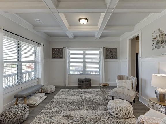 Stone surround direct-vent fireplaceCraftsman-style homeRocking chair front porchExtended island with shiplapOpen family roomBreakfast areaLoads of white cabinetry