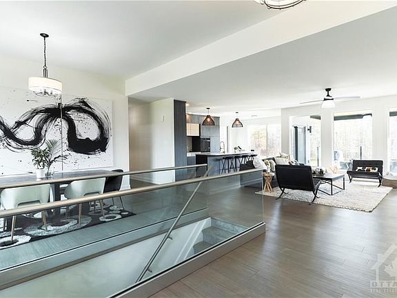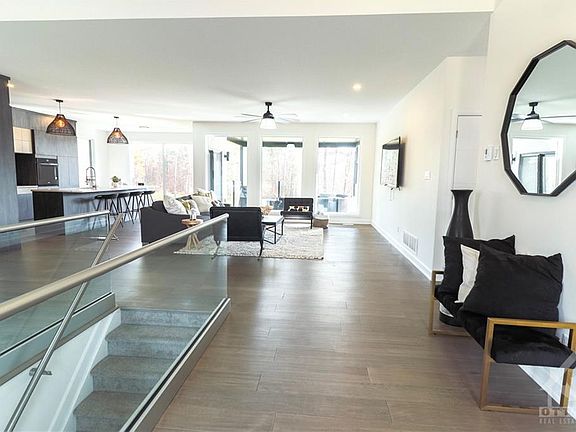 Welcome to Stonewalk Estates. Show-Stopping one of a kind custom built bungalow with a walkout basement. Main floor is an open concept floor layout and a welcoming foyer with 10.5 feet ceiling height and hardwood throughout. Custom design kitchen is punctuated with a large island that allows for informal dining and gatherings overlooking the living room and patio doors that lead to a covered porch with glass railings overlooking your large private backyard. The primary bedrooms boast a sumptuous 5 piece on-suite and patio doors that lead you to a private second cover balcony. The two other great size bedrooms share a stylish full bath (Jack and Jill). Great size dining room located in front of the house, laundry room and a powder room to complete the main level. Lover level offers two additional bedrooms, one bathroom and a great room with lots of windows to allow natural light in. High speed internet available from Rogers, close proximity to HWY 417 and 15 minutes to Kanata.