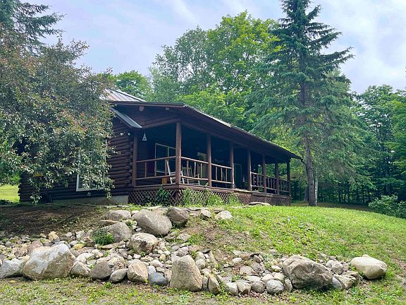 Vershire Highlands is an exceptionally nice end of road 11.3 acre farmstead with all of the most requested criteria. It is very private, has excellent southern exposure, a nice mix of open land and well maintained woodlands. There is a manageable sugarbush with the balance of the woodlands being mixed northern hardwoods. Stonewalls help to delineate some of the boundaries. A short walk from the home thru the meadow and woods leads to a beautiful freeform spring fed pond. The private setting of the pond belies the fact that it even exists on the property. Walking trails wind throughout the property and the surrounding properties. The log residence was built in 1990 and has a very useful comfortable layout. The first floor has a mudroom entry with laundry leading to the kitchen and dining area with its cathedral ceiling. There is a nicely oriented livingroom and a first floor bedroom with a first floor bathroom. The traditional front door lead from the dining area to a full length covered porch. The second floor has an open loft area and two bedrooms and a full bathroom. The full basement level has an interior and exterior stairway. The current owner uses the majority of the space as a work area. A dug well provides all domestic water and a Sam Daniels wood furnace provides the warmth. There is a separate tool shed/workshop.