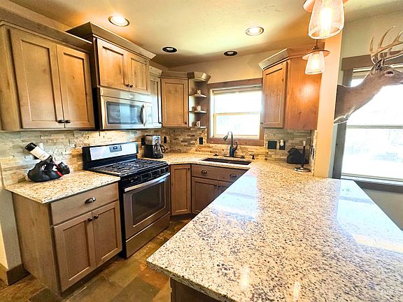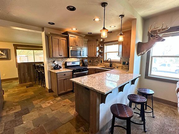 Welcome to your dream home! This cozy beautifully renovated gem sits on a spacious fully fenced corner lot with irrigation, mature landscaping, wood shed and a fire pit—perfect for outdoor living. Inside, you'll love the custom finishes, including a stunning rock fireplace, wood accents, custom wood trim, and travertine floors. The open-concept layout features large rooms, a family room, and an extra bonus room for an office or den. The gourmet kitchen boasts custom cabinets, granite countertops, tile accents, breakfast bar and a gas stove—perfect for cooking and entertaining. Bathrooms fully remodeled with tile showers and quartz/granite vanity tops. Renovations include new plumbing, electrical, HVAC, water heater,windows, insulation, and a new shop roof. Gas plumbed for grill. Enjoy the covered deck and additional patio for outdoor gatherings. The property includes a carport and large heated shop. Nestled in a great neighborhood near the Snake River and just 50 minutes from Boise.This home truly has it all!