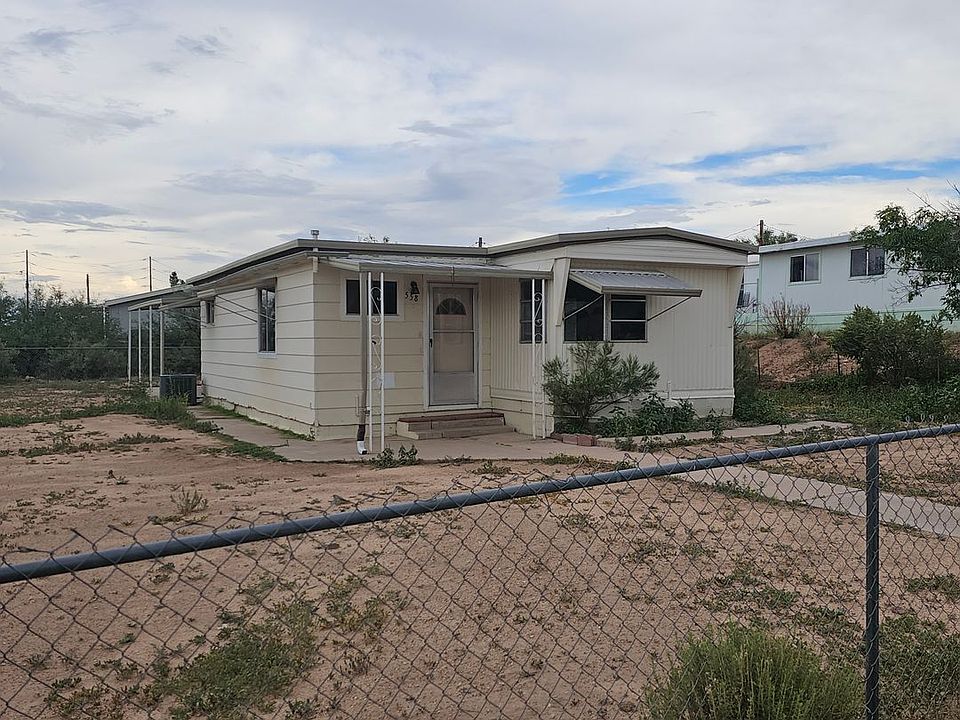 Single wide mobile home with a dining room and kitchen addition. 2 bedrooms and 1 1/2 bathrooms, den and dining room. Fenced yard and shed also.