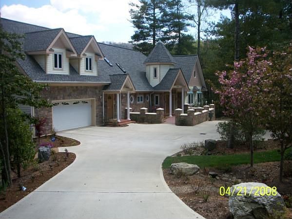 Truly a rare find. Stunning Lake Front Home in the legendary Mountains of Western North Carolina. Beautifully Landscaped with inspirational walkways through-out. Semi-private lake with year-round trout fishing; no noisy, polluting, motor boats allowed Unobstructed, Breathtaking views of lake from most rooms. Large Boat Dock to sit and relax or to board your battery powered Johnboat. Approx.15 Minutes to Brevard, a vibrant Town with; Hospital, Shopping, Restaurants, Schools plus 2 Colleges and the famous "Brevard Music Center" Custom Build Quality Construction Insulated Concrete walls on lower level 2X6 exterior walls with blown-in insulation on upper level Cultured stone and hardy plank type exterior wall coverings. Beautiful, hardwood flooring on entire main floor 4 spacious, full bathrooms with large showers and a raised, 32 jet whirlpool in master bathroom and 2 half baths. 3 full Kitchens: Main kitchen, Entertainment kitchen, Guest quarter kitchen Main Level: A landscaped, winding concrete driveway and a striking front court-yard entrance. Main Level has Kitchen, Dining Room, Bedrooms, 2 1/2 bath, Living room, Office, Laundry Room, Large 2 car garage. Main level kitchen has Island, Maple Cabinets, stainless steel appliances, powerful range hood, Remote control, vented skylight and walk in pantry. Lower Level: (Walk Out, Hillside Construction) Family / Entertainment floor has 4 large picture windows, a complete, second Kitchen with powerful range-hood, Large Family Room, Large Sitting Room, Bonus Room, Fitness Room, 3rd car garage with large work-shop. Upper Level: Spacious guest / in-laws quarters with private entrance, Complete, a third Kitchen, Bedroom, Living Room, Dinette and computer / study room. Large paved Patio on lower level Large Deck with non-splintering vinyl decking and railings on main level Quality Pella windows with hide-away, roll-up screens on most windows. Office has Phone, Cable & Cad 5 wiring. 2 beautiful, sealed, Direct Vent