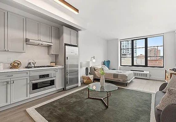 **Brooklyn's Urban Oasis: 1 Flatbush Residence** Welcome to the intersection of history, art, and modern elegance. Seamlessly intertwining Brooklyn's vibrant cultural heart with urban luxury, our apartments at 1 Flatbush present an exquisite retreat at the confluence of Downtown Brooklyn and Fort Greene's dynamism. Nestled in the heart of Brooklyn's cherished gem, Fort Greene, our location offers an unparalleled blend of history, art, and verdant allure. Dive into the neighborhood's rich tapestry with nearby landmarks like the illustrious Fort Greene Park, the iconic Brooklyn Academy of Music, and the groundbreaking Museum of Contemporary African Diasporan Arts. The streets here, shadowed by the legacy of legends like Michael Jordan, resonate with diversity from hip bars and indie boutiques to laid-back cafes, every corner sings its unique tune. Convenience is at your doorstep, with not one but two Target stores, a Trader Joe's, and a Whole Foods Market just two blocks away. Whether it's a quick grocery run or a shopping spree, everything you need is within arm's reach. Yet, amid these cultural and historic landmarks, 1 Flatbush promises a tranquil escape. Whether you're venturing to the lush landscapes of Fort Greene Park, exploring the Slope and Prospect Park just a mile away, or immersing in Lower Manhattan's delights within a ten-minute journey, our residences offer an ambient sanctuary from the city's exhilarating pace. Barclays Center, a beacon of entertainment, and the bustling Atlantic Terminal are just a heartbeat away, ensuring convenience without compromising charm. Embrace an authentic NYC lifestyle, where the rhythm of the city and the tranquility of nature coalesce, all from one distinguished Brooklyn address. Welcome to 1 Flatbush where your urban oasis awaits. **Apartment Elegance Quartz Mastery: Marbled countertops that exude sophistication. Distinct Spaces: Separate living and dining areas (available in select homes). Culinary Excellence: Bosch kitchen appliances, entertaining islands/breakfast nooks, and gourmet kitchens. Modern Conveniences: Dishwashers, built-in microwave ovens, Bosch washers & dryers. Craftsmanship: Custom shaker style soft close cabinetry, elegant baths with tailored vanities, and driftwood-stained wood flooring. Luxury Touches: Expansive city views, oversized windows, abundant closet spaces, recessed lighting, and individual climate control for each room. **Building Perks Fee-Free Living: Enjoy a no-fee building. Personalized Services: 24-hour concierge in a renovated lobby, live-in super, and parcel room service with delivery notifications. Entertainment & Wellness: Resident lounges with 65" TVs and a full catering kitchen, a fitness center with Peloton spin bikes, and a game room laden with billiards, darts, shuffleboard, and more. Outdoor Elegance: Seasonal wraparound rooftop deck with lounge chairs, an outdoor kitchen/grill, and proximity to Fort Greene Park. Additional Amenities: Onsite management, pet-friendly premises, laundry room for oversized items, valet housekeeping, secure bike storage, rentable storage lockers, and unrivaled subway connectivity. **Features available in select homes.** Please Note: Pricing and floor plan visuals are dynamic and may change. Photos presented might reflect a different unit than the exact unit available.