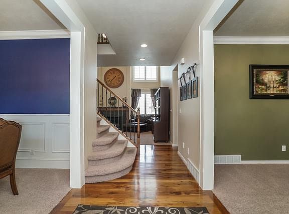 MULTIPLE OFFERS RECEIVED! Seller requesting highest and best by noon Wed 22 JUL. Now You Can Have The Home You've Always Wanted! This impeccable home features handsome exterior with attractive window shutters and welcoming front porch, step inside to gleaming hardwood floors, large cased openings into the piano room (could be a formal living room) and formal dining room with custom wainscoting / crown molding. Great room with two-story floor-to-ceilings windows with plantation shutters / gas log fireplace, large open kitchen with staggered cabinets / granite / center island / gas range. Upstairs with generous master retreat / vaulted ceilings / spacious walk-in closet / dual sinks / separate tub and tiled shower, 3 bedrooms, full bath and laundry room. Finished basement with 2 additional bedrooms, roomy family room with 7.1 surround sound (included) and wired for projector (smurf-tubing for easy wire installation). Large fenced backyard great for entertaining with covered paver patio (gas line stubbed to BBQ), pergola, firepit, lush landscaping, in-ground trampoline, playset and half-court BB. Brand new 50-gal water heater, central vac on 1st & 2nd floors, Bartile roof with lifetime warranty, $6000 Superior Water whole-house filtration system with extra filtration to kitchen sink and refrigerator water line. Lots of storage throughout plus large cold storage room. Call to show / access code.