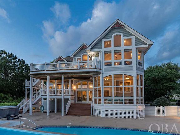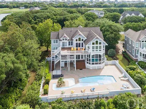WOW FACTOR!! SHOWS LIKE NEW!! BORDERING THE 7TH TEE, THIS STUNNING HOME IN THE CURRITUCK CLUB BOASTS UNOBSTRUCTED SOUND AND GOLF COURSE VIEWS! Beautifully furnished and tastefully appointed with upscale finishes throughout. Extremely well maintained....this home is turn-key! 7 spacious bedrooms! Elevator! Light and bright open great room, gourmet kitchen with gas range! 2 rec rooms! Ideal for entertaining and hosting family/friend gatherings! Awesome outdoor living with expansive sun decks, covered decks, lovely pool area with hot tub and spacious lounging areas! Step into Tranquility Farms and experience golf course living at its finest! Designed by the renowned Rees Jones, The Currituck Club golf course has been rated in the top 25 golf courses to play in North Carolina by Golf Digest. The Currituck Club features a modern clubhouse, full driving range and practice green. Additional amenities include: Gated community with Guard house and security, Beach valet service, Trolley service, A summer full of activities and programs, 3 community pools with restrooms, Kiddie pool, Walking and biking trail, Fitness and activity center, Beach rental equipment (The Surf Shack), Bocce ball, Shuffleboard, Basketball courts, Lighted tennis courts, Cornhole, and Volleyball!
