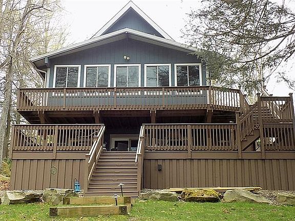 Completely remodeled 5Br, (2 Suites) 3Ba Chalet Lakefront on Roamingwood Lake, a Powerboating Lake in Amenity Filled - The Hideout! Relax Dockside on your Private Lake Deck or on your own private beach! Or how about entertaining on the Spacious Rear Deck w Wet Bar and Granite Tops, S S ''Blaze'' Grill and Cold Storage! Rinse off in your outdoor shower after swimming! Utility Shed for the Toys! Home features Ultra Modern Eat-In Kitchen w Granite Tops and Built-in Wine Rack; Dining Area; 4-Season Room w Propane Fireplace w Great Lakeviews; 2 Bedroom Suites and a Full Finished Walkout Basement leading to your Level Lakefront! 2-Panasonic Heat-Pump A C units and 2 Rinnai 1004F 36, 500 BTU Propane heaters. Home has been completely remodeled inside and out! Call Today for your Private Tour! A Must See!