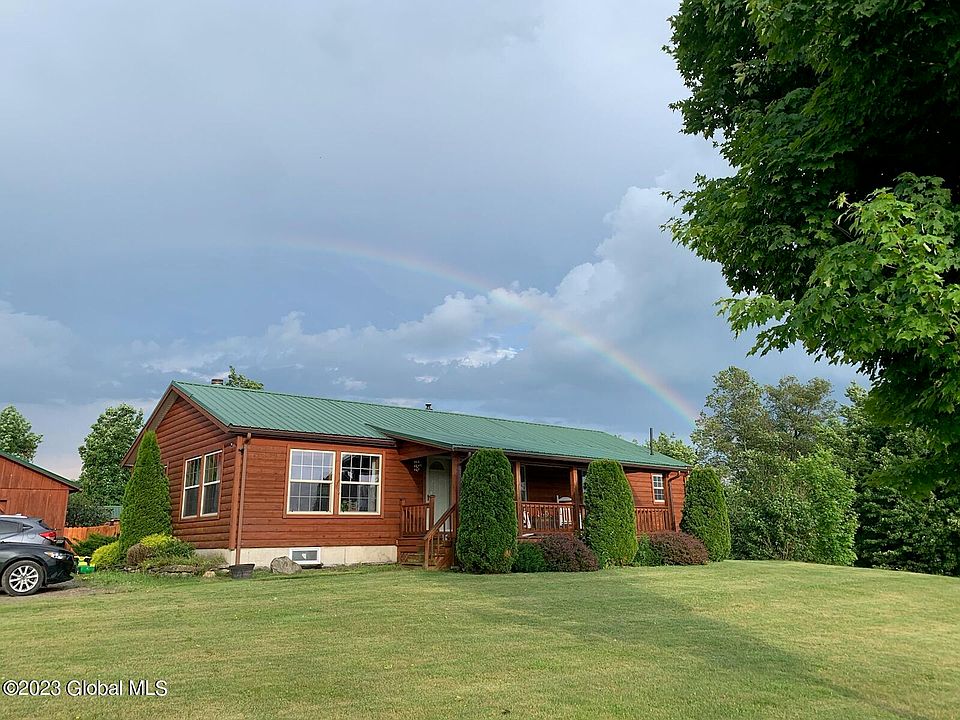 Paradise setting! Sit on the front porch of this lovely house & enjoy the views all year long. This immaculately maintained 3 bedroom, 2 bath house sits on 4.6 acres in beautiful Palatine Bridge. Entering the house, you step into an immense open-concept living room and kitchen. Large windows all around keep it bright & cheery w/ a fireplace for the perfect cozy ambiance in winter. Along the hallway are 2 large guest bedrooms & full bath. Across the hall, you'll adore the laundry/utility room that leads to the spacious back deck & an expansive fenced-in back yard. Finally at the far end of the house is a grand master bedroom & master bath. The detached two-car garage has ample working room & a heated office space. Separate outbuilding for hobbies. Come see this move-in ready beauty!