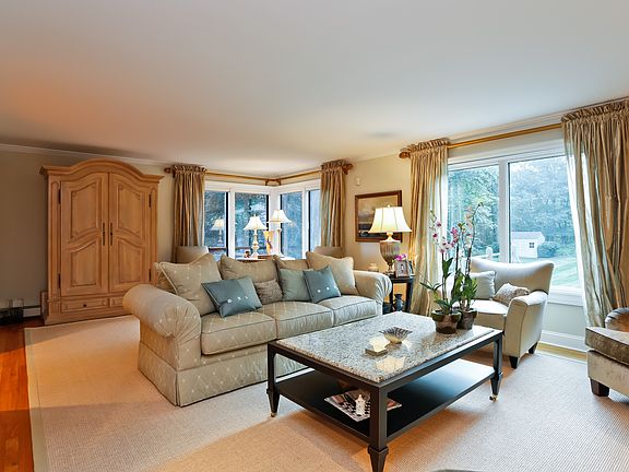 Beautiful home set back on private drive. Magnificent landscaping and lush level property complimented by exquisite gunite pool w/fountain & hot tub. Sun-filled rooms w/open flow & spectacular architectural moldings throughout. Large living room w/fireplace opens to elegant dining room. Library w/built-ins& fireplace. Spacious gourmet eat-in-kitchen. Family room, Au-Pair Suite. Master bedroom has oversized master bath & closets. 3 additional bedrooms. Close to train & shops. Chappaqua Schools.