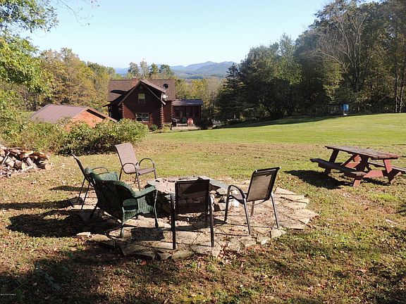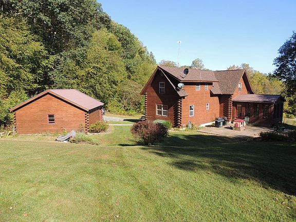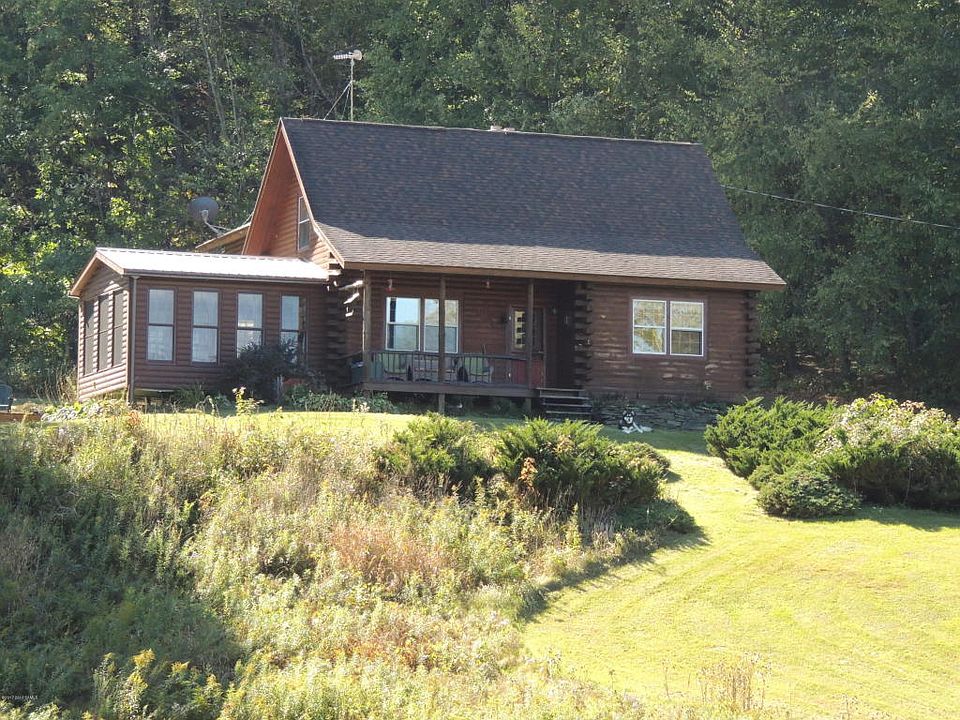 Beautiful country log home situated on 36.70 acres. Stonewall fences, fire pit. Apple trees, blueberry bushes,wild pear tree, concord & white grapes. Enjoy your own private pond. Beautiful hardwood floors throughout. Large full basement could be finished with a family room if you need more space. Slate foyer entrance. Brick hearth wood stove hookup in kitchen. Beautiful views! Glass enclosed sun room. 2 car detached garage.
