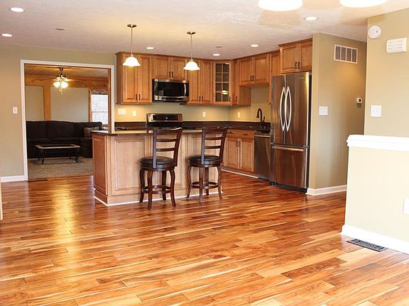 This lovely home is located close to the cul-de-sac where unbelievable renovates await you! The kitchen is custom designed and sure to please! The open floor plan encourages entertaining and delivers a functional living space. The quartz counters contrast brilliantly with the soft wood tones on the flooring and cabinetry. Never run out of storage! All stainless steel appliances are included. French doors from the kitchen open up to the family room. From here you can step out onto the large wrap-around deck that over looks the wooded yard. Three bedrooms and an updated bath are also found on this level. The bathroom has a quartz vanity, ceramic tile flooring & tub surround, plus a large soaking tub. The lower level is where you will find a large game room and a beautiful stone gas log fireplace. A second bath with walk-in shower and radiant floor heating is also located in the lower level, in addition to a laundry room.