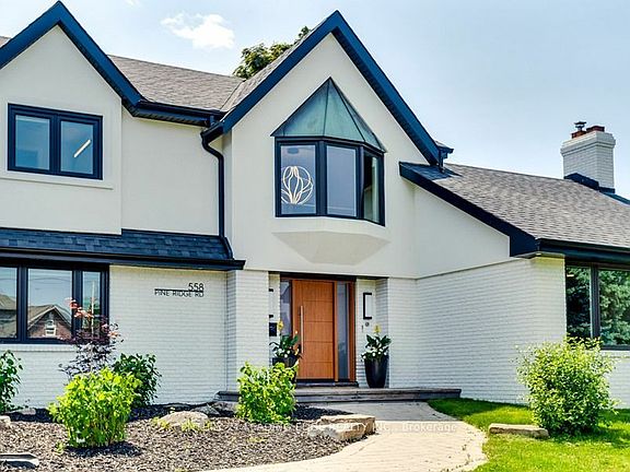 Welcome to 558 Pine Ridge Road! You`ll fall in love with this gorgeous South Rouge Valley property! The oversized 139x149 lot (irregular) is a nature lovers` dream with endless views of treetops and an abundance of birds! This beautifully updated and renovated modern Tudor offers breathtaking views from nearly every window in the house! Walk out from the kitchen straight to your pool and lounge in the sun in your backyard oasis! This bright sunny house features a spacious primary bedroom, custom kitchen and laundry room with brand new bleached hickory flooring throughout. Railings, Staircase, Exterior Paint and Stucco, Roof, Windows, Doors, Eaves, Soffit and Facia all updated in 2022. New custom laundry 2023. Fully renovated basement 2024. Explore the hiking trails or go for a ten minute walk to the beach all while just a half hour drive to Downtown Toronto. A MUST SEE!!!! ****PLEASE, SEE FULL LIST OF UPGRADES!**** **EXTRAS** GE Appliances 2022: Fridge, Stove, B/I Microwave, Dishwasher; LG Washer/Dryer (2023), All Elfs, All Window Coverings, Central Vac, Pool Equipment (2022): Pool Heater, Salt Water System, Sand Filter & Robotic Pool Cleaner, Pool Pump (2023).