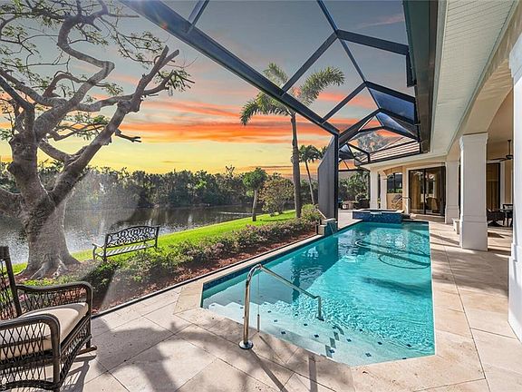 This south facing stately home exudes quality throughout with fine millwork and volume tray ceilings. It is situated overlooking a private lake where nature and natural beauty abound. The outdoor living area is completely enclosed with picture window screening featuring a dining area, two fire pits, a lap pool and spa, gas grill and several seating areas. The kitchen and family room, with vaulted ceilings, open onto the outdoor living area through floor to ceiling sliding glass doors that make this home perfect for entertaining. The grand living and dining rooms with adjacent butler’s pantry exude luxury and provide a sophisticated ambiance for your entertaining pleasure. There is a large master bedroom suite with his-and-her fitted closets. The two ensuite guest bedrooms are located on the other side of the home providing privacy for guests and owner. There is garaging for three cars. Located just a short stroll to the Audubon community clubhouse, fitness center, pool & tennis courts, and close to the very best local beaches & restaurants & shopping.