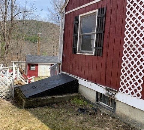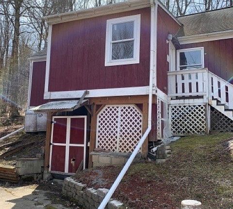 Full basement . 2 car garage with front extension and office space heated with pellet stove. Large concrete pad in front of garage. Remodeled bathroom with large handicapped shower. Front porch with an elevator to concrete pad. This home has had 60,000 in handicap upgrades. Large fenced in yard with several gardens. New large shed/workshop