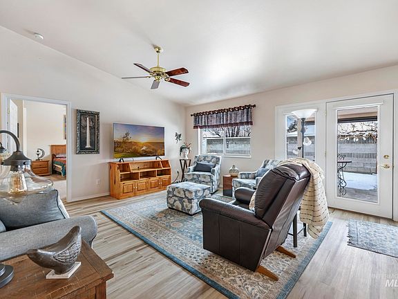 Welcome to your ideal retreat in a peaceful 55+ community, where comfort and convenience come together effortlessly. This beautifully maintained 3-bedroom, 2-bath home is tucked away on a private street, with yard maintenance and snow removal included for worry-free living. The thoughtfully designed layout features a bright, open kitchen with an expansive island and breakfast bar, perfect for hosting friends or enjoying quiet mornings. Generously sized rooms provide plenty of space to unwind, while ample storage keeps everything organized. Large windows invite abundant natural light, creating an airy, welcoming atmosphere. Step outside to your private, fully fenced backyard — a serene oasis with room for a small garden. The covered patio is ideal for outdoor dining or relaxing in the fresh air. With its inviting atmosphere, low-maintenance lifestyle, and prime location, this home offers the perfect blend of comfort, security, and community. Don’t miss your chance to make it yours!