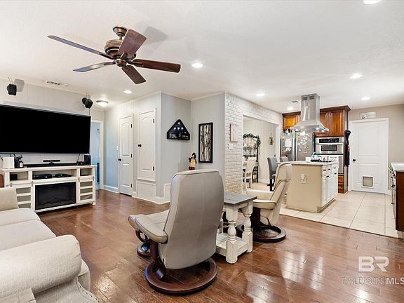 This exquisite home, nestled in the Lake Forest Subdivision, is mere minutes from I-10, offering easy access to a variety of shopping, dining, and entertainment options along the Eastern Shore. The expansive kitchen boasts 3cm granite countertops, a gas range set within a large island, and ample storage in the oversized pantry. Elegant tile flooring extends throughout the kitchen, dining area, and secondary living space. An additional room provides versatility, serving as a fourth bedroom, man cave, workout area, or office. Outside, the covered patio invites you to relax in your private haven, complemented by a large, fenced yard with an extra deck encircling the pool—ideal for entertaining. The 16x36 saltwater pool, complete with a new liner, is ready for enjoyment, enhanced by solar lighting for perfect nighttime swims. A 12x16 storage shed offers ample space for tools. Additional features include a tankless gas water heater, a striking metal shingle roof, a WIFI AC thermostat, a new front door, an updated vent hood in the kitchen, and a dedicated coffee bar area. Buyer to verify all information during due diligence.