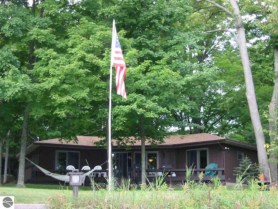 ON THE SHORE OF TORCH LAKE discover this classic northern Michigan quality-built home. Brick accents compliment the curb appeal and exterior of this well maintained home in a private wooded setting. You will appreciate the one floor living with an open floor plan. Relax in the large living room while listening to the crackle of the logs in the natural stone wood burning fireplace. The kitchen features oak cabinetry. Wake up to stunning sunrise waterfront views from the master bedroom with sliders leading to the deck, a walk in closet and private bath. Invite your family and friends over for a barbeque on the large deck with built in benches. The detached 2-car garage offers plenty of room for storing your toys. Lovingly cared for expansive yard with perennial gardens and underground irrigation to keep the yard lush all summer long. The mature trees are the perfect place to hang a hammock to relax with a good book on a summer day while listening to the waves lap the shoreline. You will love the 111' of premier Torch Lake frontage, the perfect spot to launch your paddleboard, sailboat or ski boat for a day on the water. The entire Chain-of-Lakes will be your playground where you can head to Elk Lake to spend a day in Elk Rapids; Clam River for dinner at the Dockside; Alden for ice cream; enjoy a lazy day going down the Torch River or head to Lake Skegemog to fish. The furniture is included.